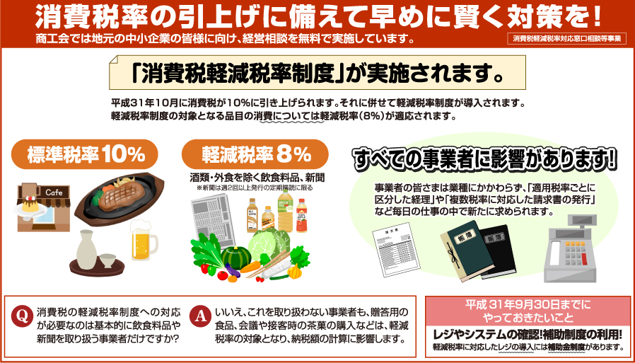 府内の商工会では、消費税軽減税率・消費税転嫁対応相談窓口を開設しております。